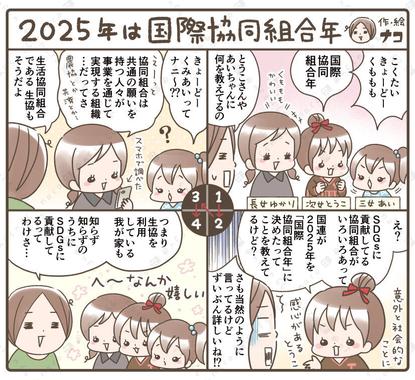みやぎ生協・コープふくしま発行『おうちでコープモニター』内の国際協同組合年についての記事でイラストと4コマ漫画を担当しました。